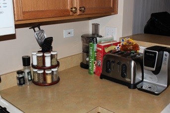 If your kitchen counters look anything like the one on the left, you may wish to review some of the products below that can help clear things up. By moving items off the counter, organizing drawers, and using space you may not have thought of, the kitchen appears larger, looks cleaner, and functions better. We’ve compiled 30+ of the best kitchen organization products – all for $30 or less.